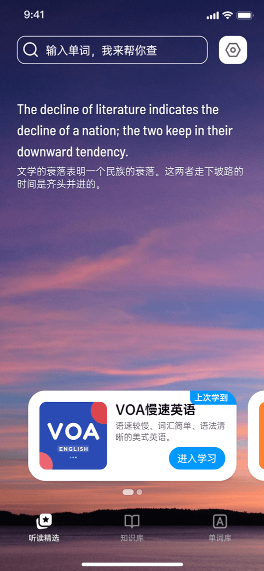 为英语学习者提供精选听读内容,搭载长按查词、显示模式切换、语速调节等工具,带来高效沉浸的学习体验。内置英语单词库与语法、句法、音标知识库,帮助用户系统夯实基础。